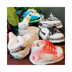 Vente en gros de pantoufles en peluche Fly Man femmes hiver chaussures en coton PVC maison baskets en peluche diapositives en stock